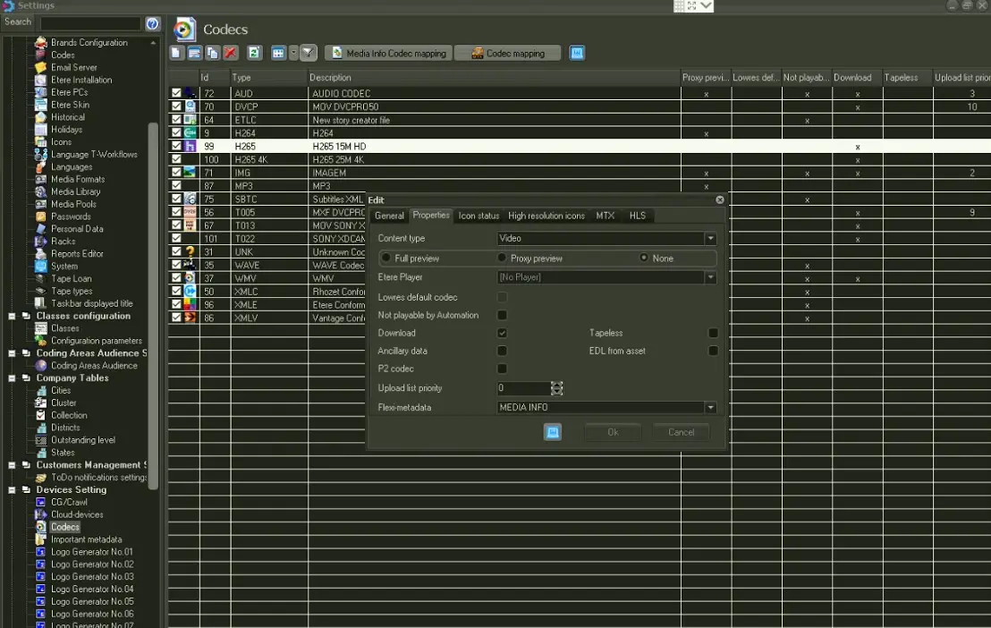 Once the codec is configured, we can use the H.265 (HEVC) Encoder in the Etere Ecosystem.