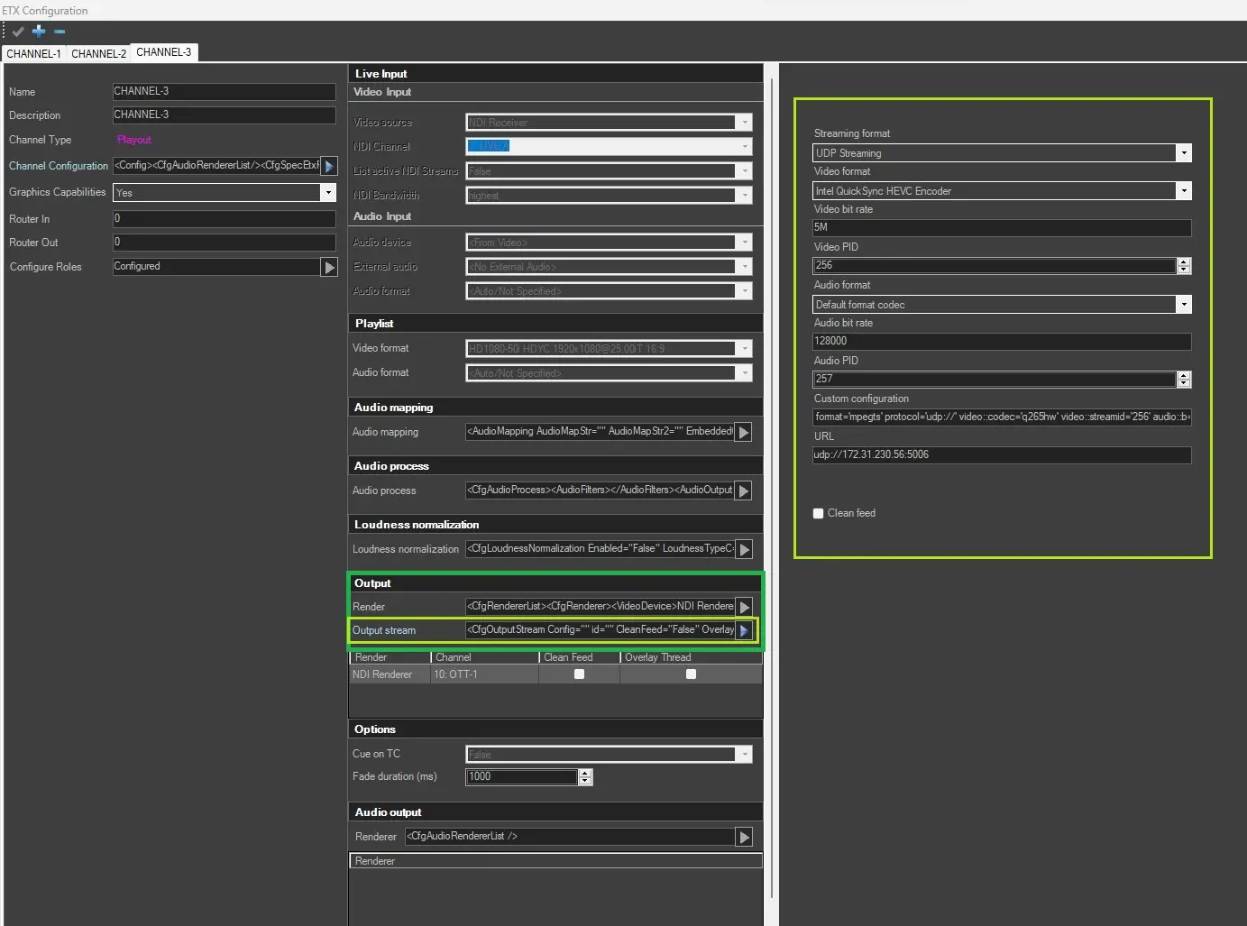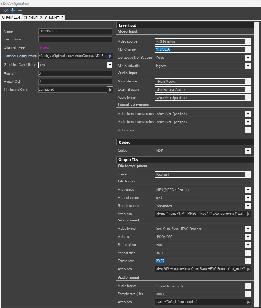 To start using HEVC Encoders as Automation Stream Video Format, we need to edit the ETX channel configuration.