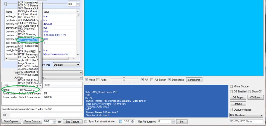 Upon selected the “DVB Compatible Streaming” noticed that the “Format” parameter would be automatically set to prepare for streaming.