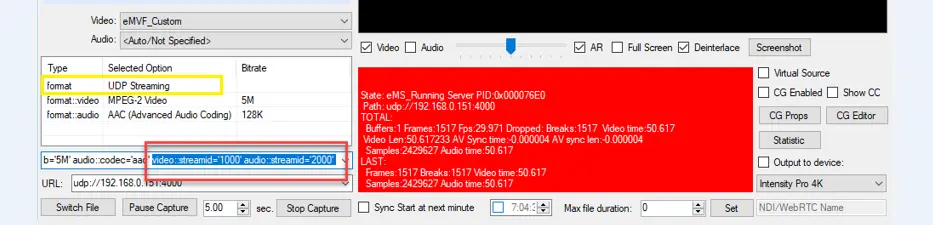 When configuring UDP streaming, you can set the stream PID for video and audio for synchronizing the video and audio packets, as show in the image below.