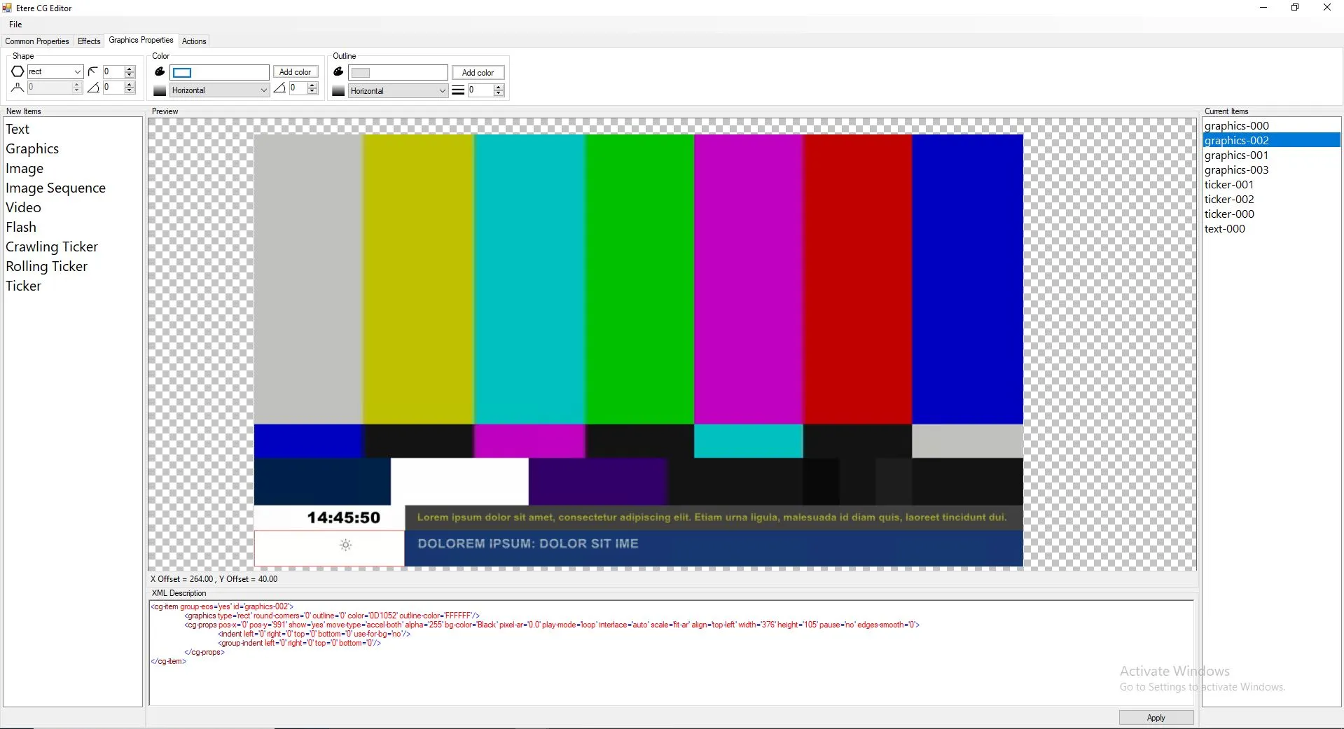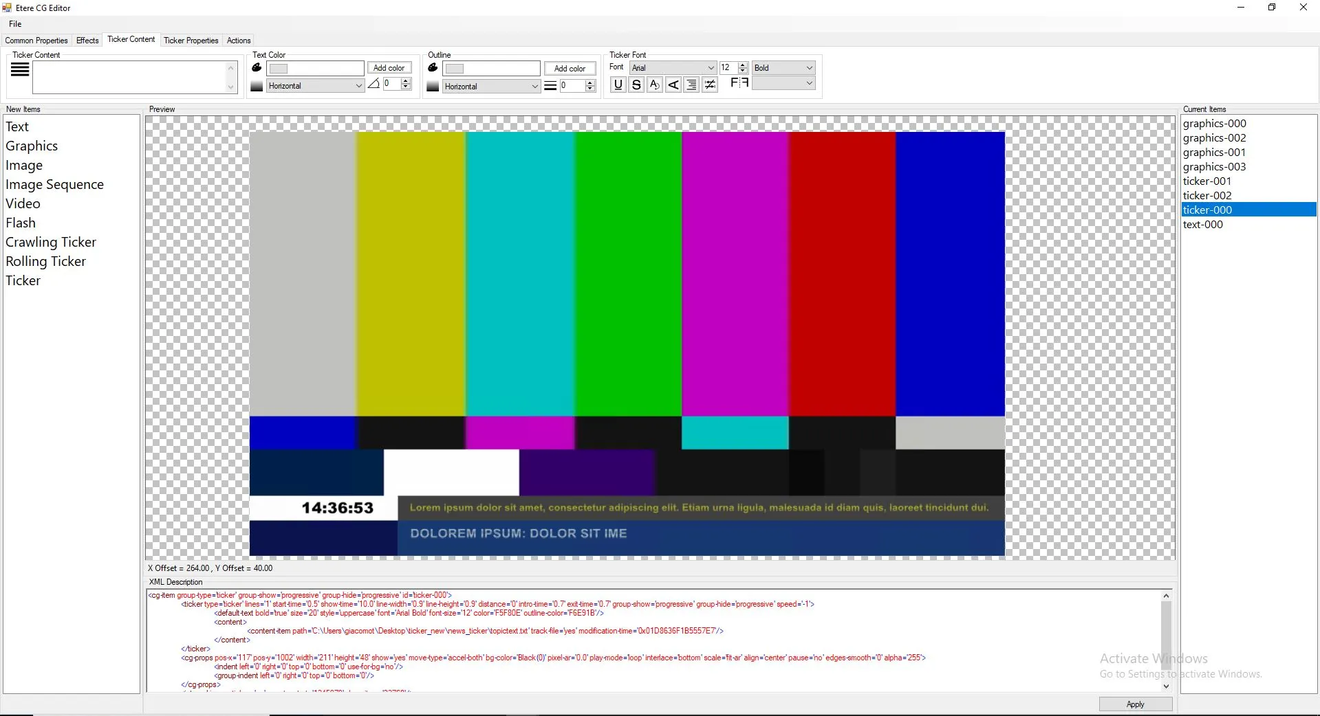 Next, launch ETX CG Editor and preview the RSS Ticker file in ETX Player.