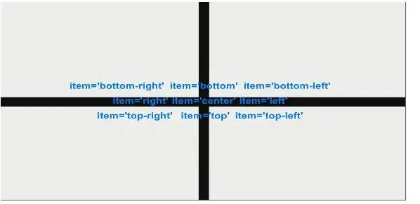 With anchor property, you can change the zero point for positioning items. This property is nested in <anchor> node of item XML description: