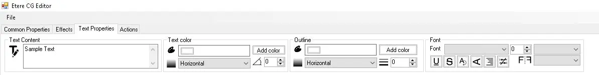 Following all the related Tools and Properties available on the Etere CG Editor Toolbar: