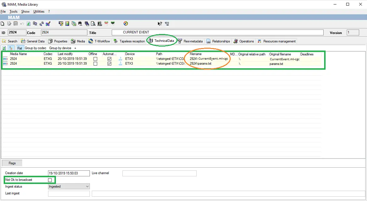 Launch Media Library; from the Search tab, click on the New Asset icon to create a new asset with asset type “ETX-G” as indicated below. Indicate the asset title as “Current event”.