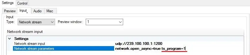 In the above example, the “ts_program” is set to “1” to start from the second program in the network stream.
