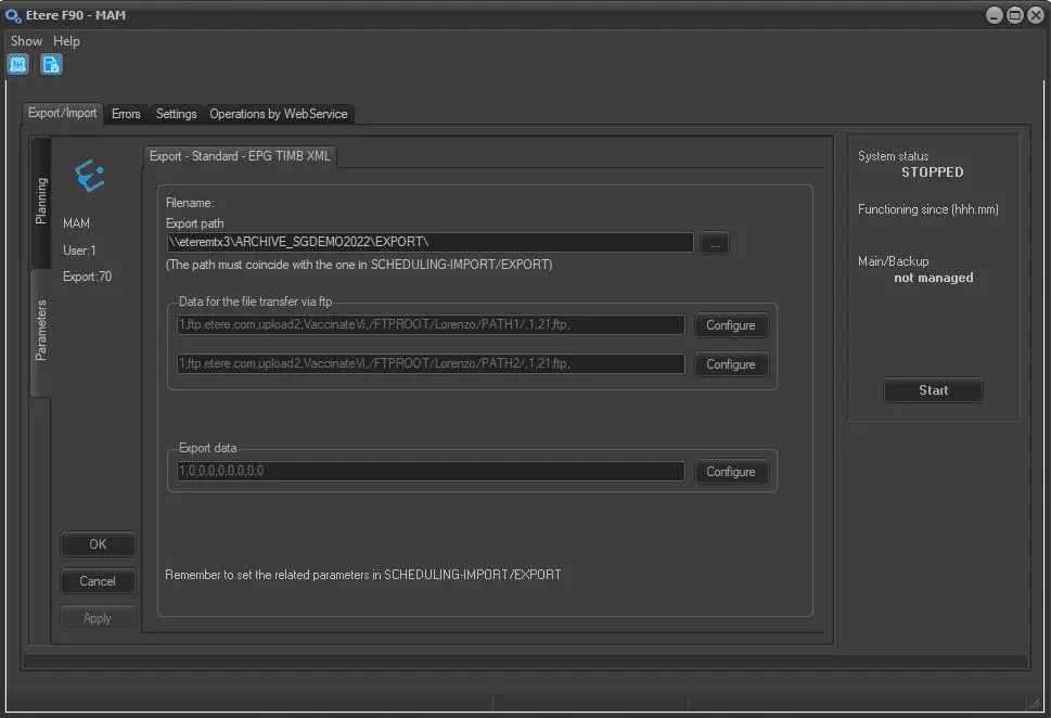 Remember to set the same parameters in the Etere Scheduling > Import/Export module and apply the changes.