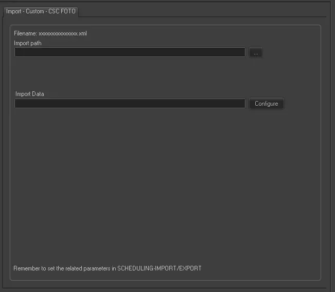 Remember to set the parameters in the Etere Scheduling > Import/Export > IMPORT\CUSTOM\CSC\PHOTOXML.