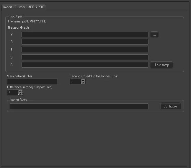 Import path - Specify up to 5 split, insert the path to the splits or leave it blank to deactivate the import.