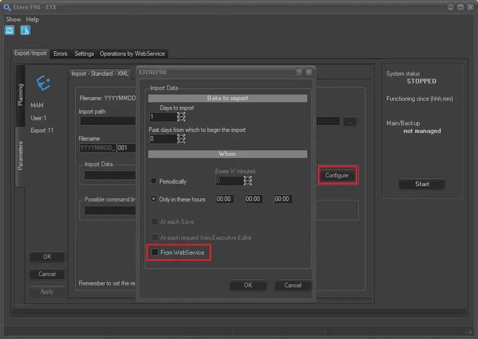 In the "Import Data > Configure" section, enable the option "From WebService" to import only files coming via web API.