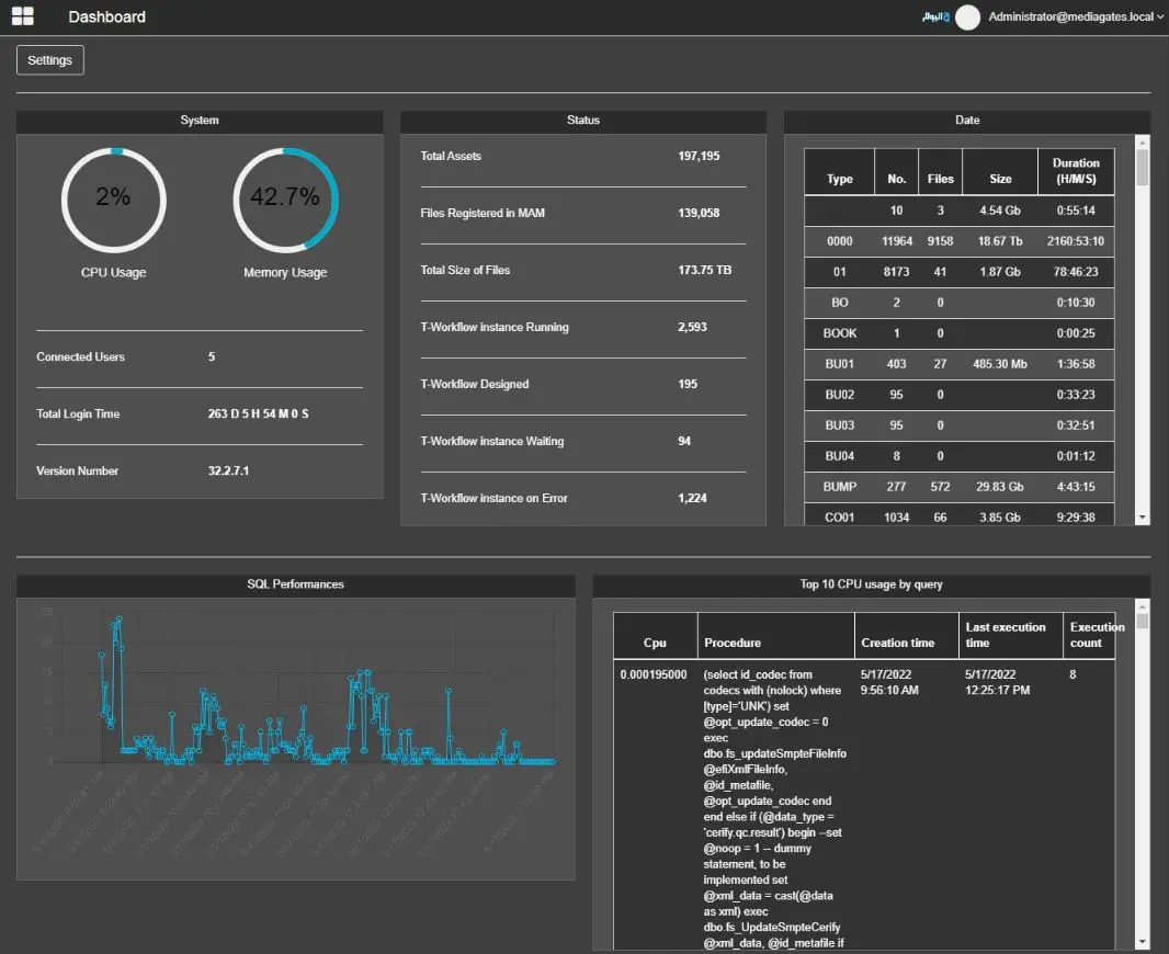 In the panel on the right side, a table shows the top 10 queries that used more CPU, providing the amount of CPU, which is the procedure that was launched, when it was created, when it was executed for the last time and how much time did it take to complete.