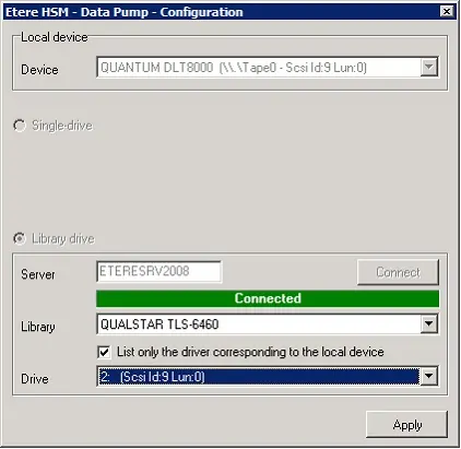 In order to use a tape drive in Etere HSM, it should be configured as follows: