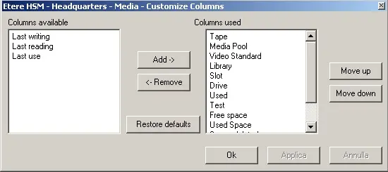 Columns displayed of both, Media and Working Queue sections can be set by using the respective options under the configuration menu, it will be possible to add and remove columns as well as setting the order on which they will be displayed: