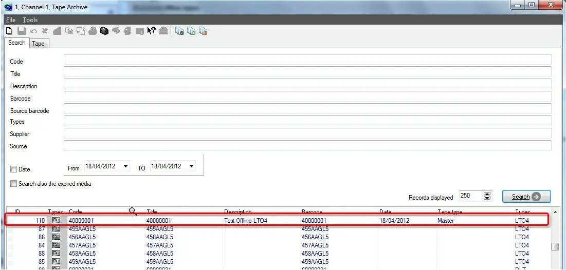 1.Launch the Tape Library module and search for the tape in question, then open it,
