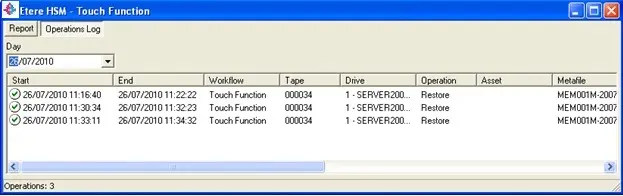 The [Report] button (hsm_MaintenanceTime03) permits operators to track all maintenance operations from their scheduling to their final results, this across two different sections: