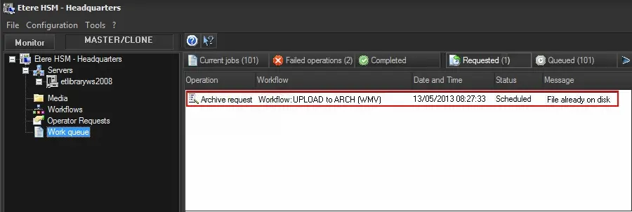 4. Etere HSM Headquarters will receive the request according to the 'workflow check' interval set under the Configurations > Options menu, under the 'Scheduling' tab: