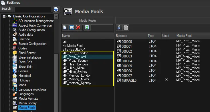 Description : Indicates the media pools (e.g. MP_Proxy_Miami, MP_Proxy_Sydney and MP_Proxy_London) where files will be archived, specifying a selection priority.