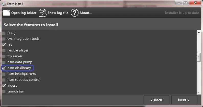 Among the list of applications, select “hsm disklibrary” and other Etere applications that you intend to install on the machine. Click <Next> to continue.