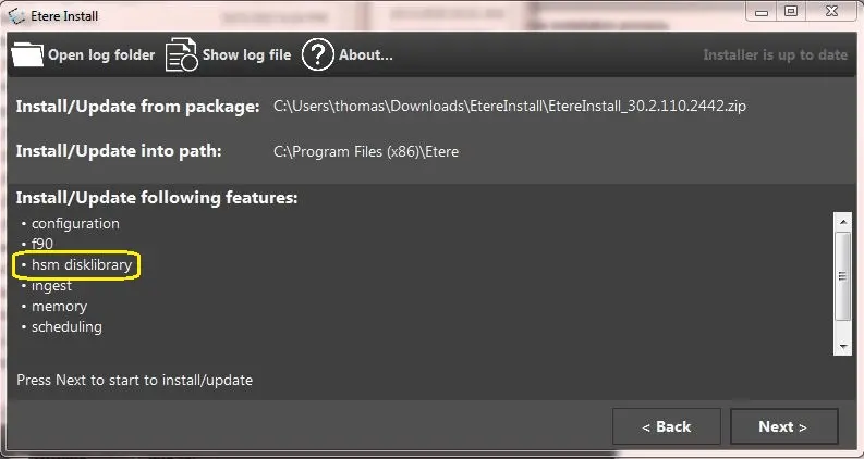 Select an installation package released by Etere that includes the HSM Disk Library application, click <Next> to continue.