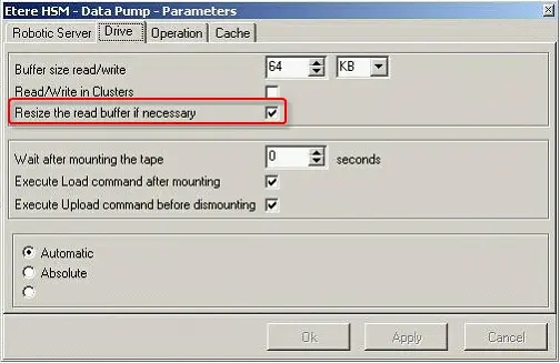 In the event if Etere’s SCSI commands does not include the “dismount” command, the tape exchange would failed. By enabling the “Library-Assisted Drive Unload” option to keep the Library default settings should the scenario occurred.