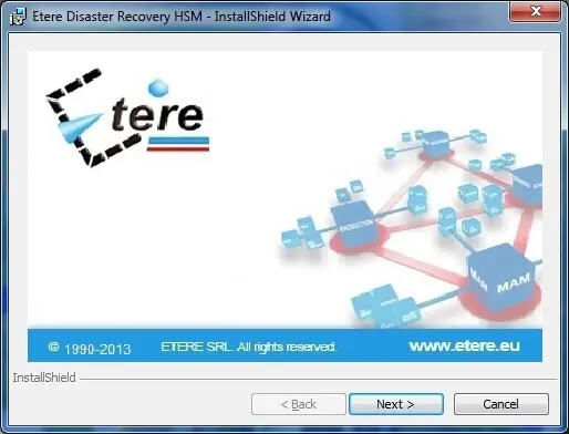 1.Execute setup executable (Setup_Etere Disaster Recovery HSM.exe) to launch the installation wizard: