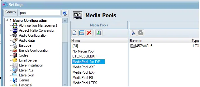 Launch Configuration module, access Settings > Basic Configuration > Media Pools, click the “New” button to create a new media pool.