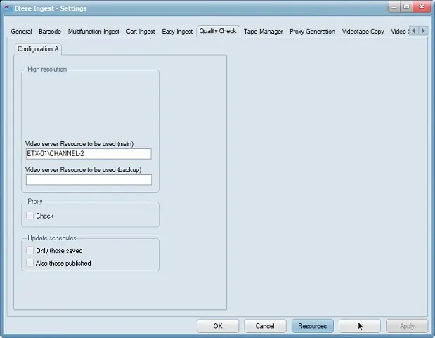 •Video server Resource to be used (main): Select the main server resource to perform the Quality Check on video files.