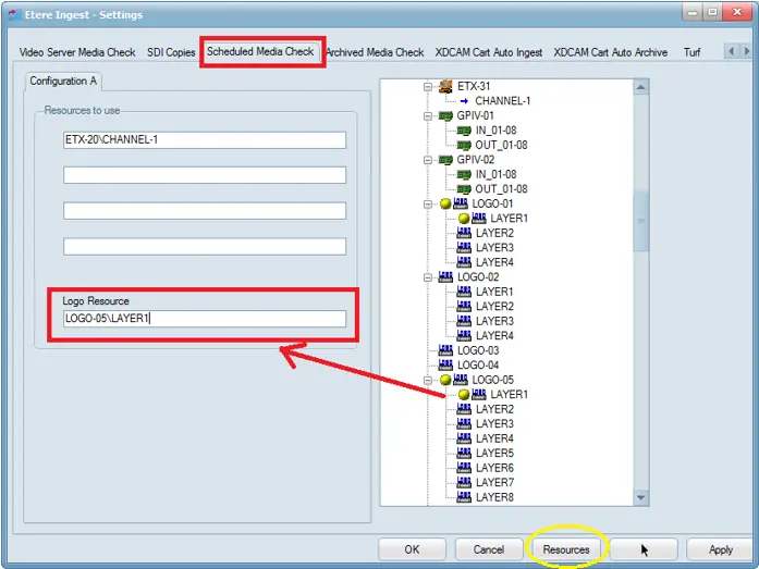 Before you can check the secondary events presented in the Scheduled Media Check section, you would first need to define the Logo resource.
