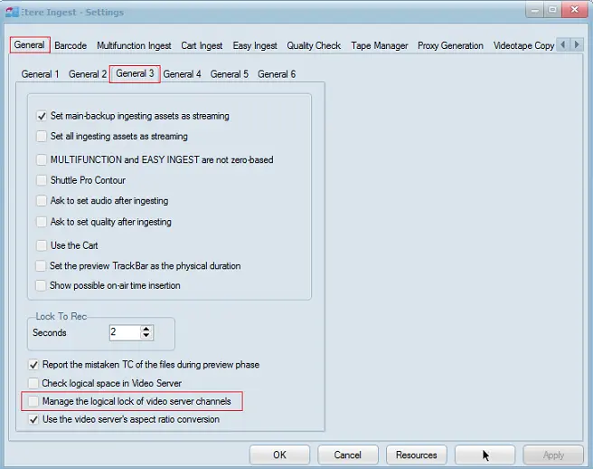 1. In "Ingest > Settings > General 3", enable the "Manage the logical lock of video server channels" parameter: