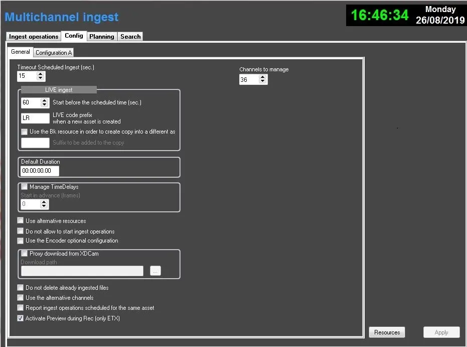• Use alternative Resources: By enabling this parameter, each time you will try to ingest from a channel that is currently busy. Scheduled Ingest will automatically try to use any of the other channels also configured for Ingesting. Only those channels correctly configured in the new resources will be used.
