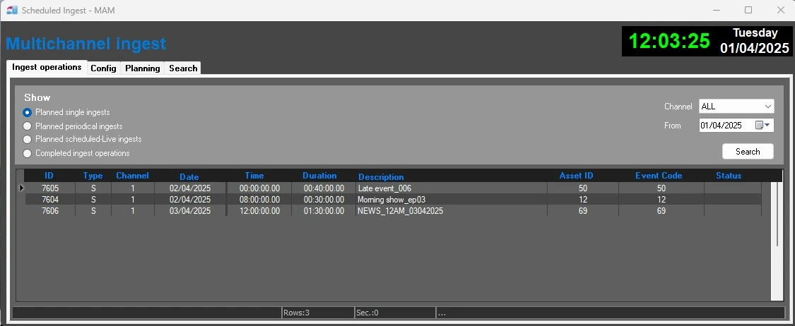 - Planned scheduled-live ingests (i.e. non-ingested but present in the broadcast playlist).