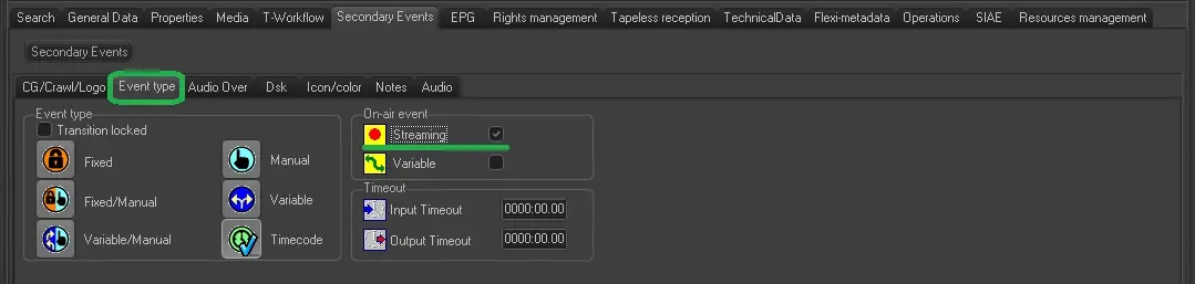 2. The ingest operation will be a made as a second asset, for example "Juve - Real 2009", inputting all relevant data. Under the properties tab of this asset make sure the streaming box is activated under the 'Event Type' tab (this option allows the LIVE event to be broadcast at any time during ingest).