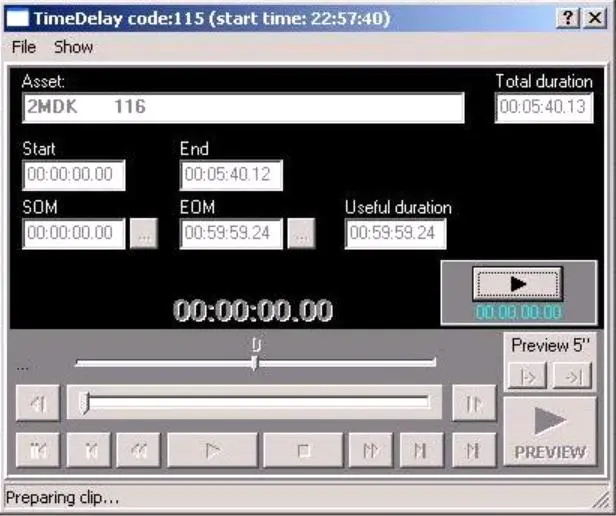 The scheduled event may be a Time code start (if you are going to opt in to the delayed program at a particular cue point), or a manual start, (if you prefer allow the delayed program to just run, and to '"crash in" to it as thought it were live).