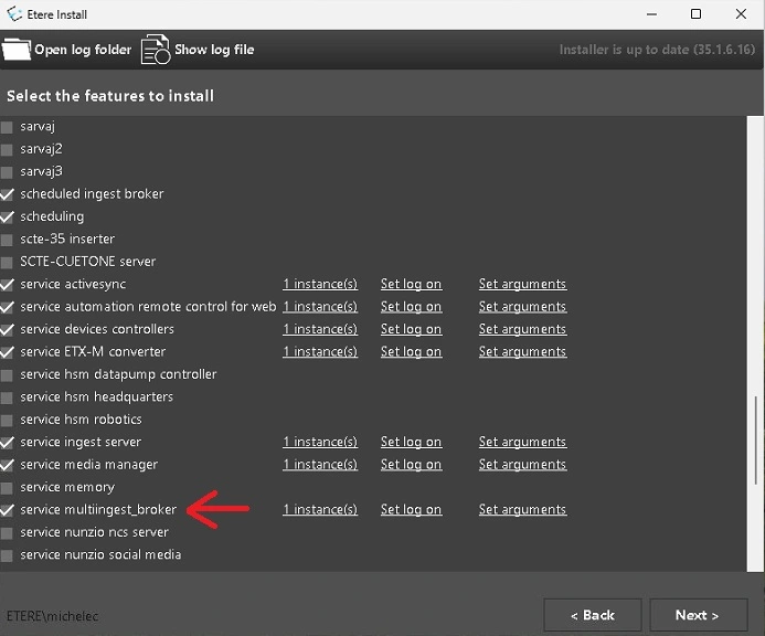 To install it, you must enable the checkbox > Etere_Multingest_broker_Service_Install