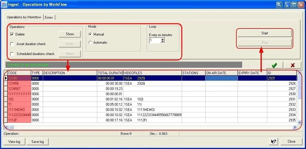 1.Launch the Etere Ingest module, and open the Operations by Workflow component to execute the previously assigned T-workflows: