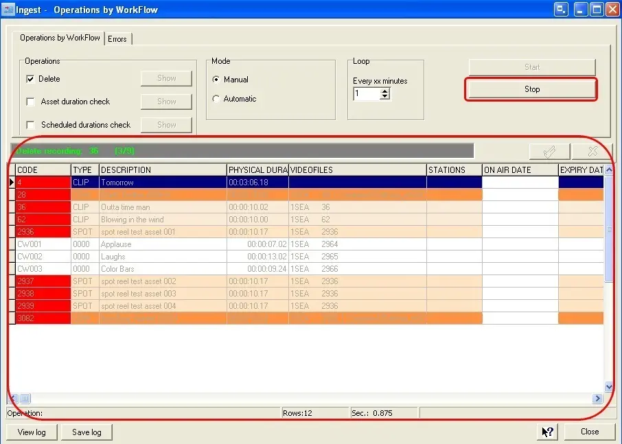 The Operations by Workflow module allows to either manually or automatically perform deletions, asset duration check and scheduled duration check of video files associated to certain assets attached to T-workflows based on these actions. It's here were they are confirmed and performed after have been launched from the relative asset forms, the figure below clearly illustrates how to perform this task: