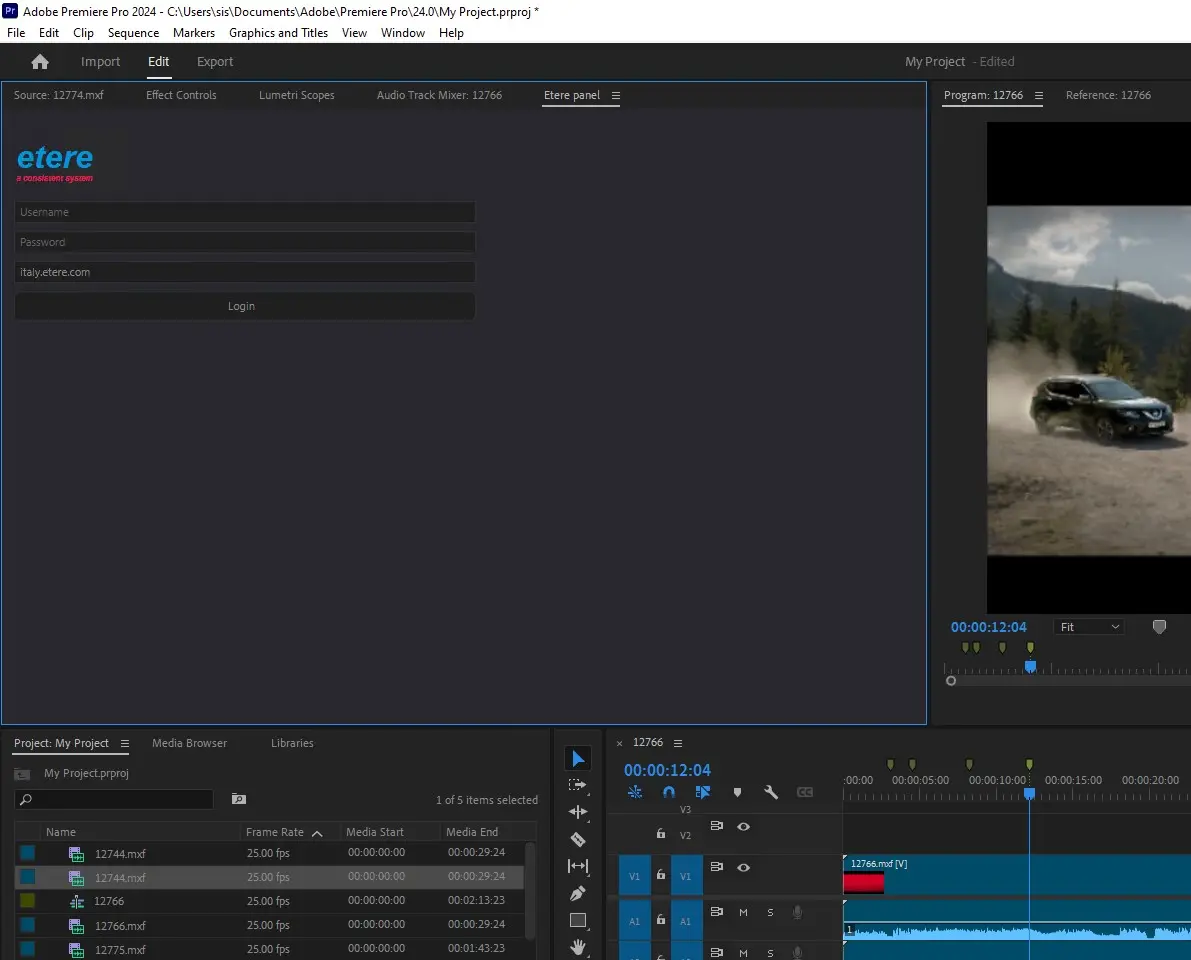 Once the Etere's Adobe extension has been installed it's ready to be accessed through the "Login" page. In order to start using the extension it's required to authenticate yourself into the Etere system, this, by entering the following information: