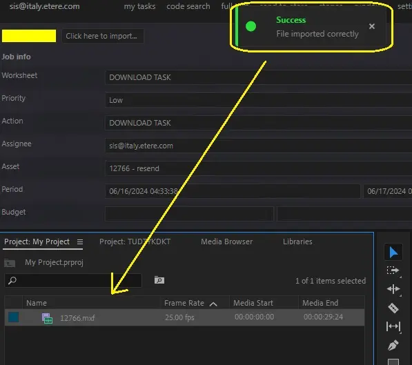 3.The status will become yellow indicating that the task was undertaken, you will be able to download the required media by pressing the [Click here to import] button: