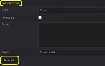 6.Press the [Save task] button and the task will be set as completed and its related T-workflow will move forward (e.g. to an upload task).