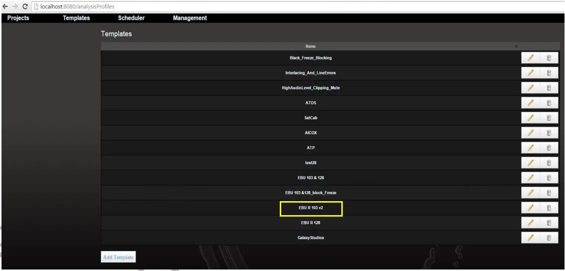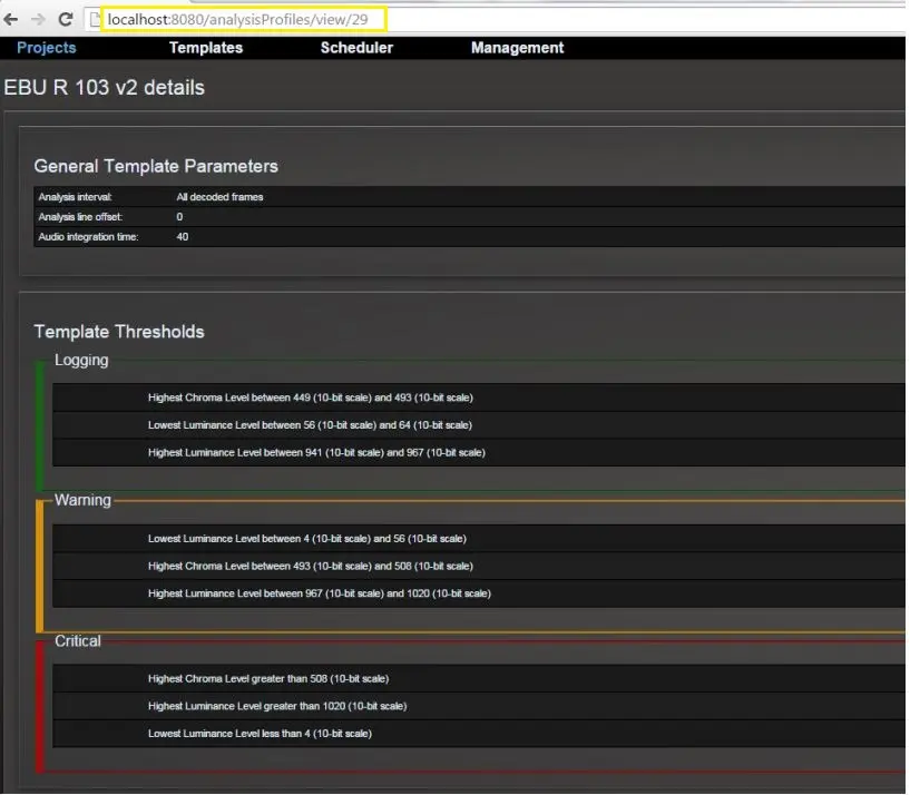 Select one of the analysis template (e.g. EBU R 103 v2) to view its parameters.