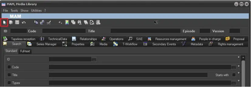 Media Library allows creating assets (within the Etere's database) in various different ways specific for different situations. in order to create a new asset it is enough to go to the File | New option from the main menu, press the [New] button from the toolbar (or use the CTRL+N combination key):