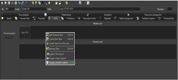 First, launch the Media Library module and access to Media tab, right click on interface and select “Graphic project creation” from the contextual functions menu.