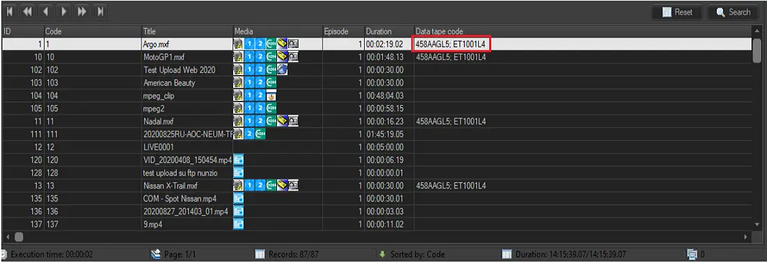 The “Data tape code” column enable you to view which LTO tapes the assets were archived in Media Library at a glance, without the need to extract the similar information from the HSM Archived Content report and HSM Tape List report. If the assets were archived on more than one LTO tapes it would be indicated with a ‘+’ sign.