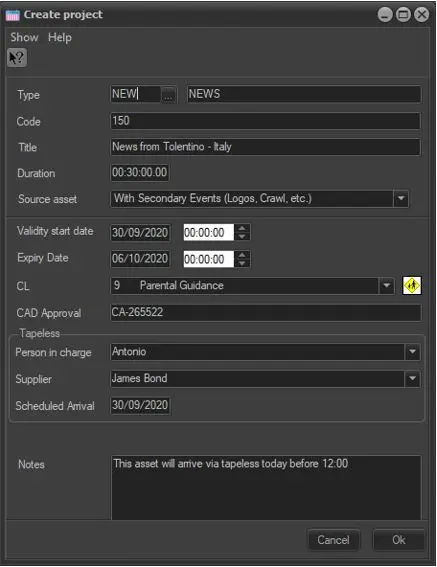 Description : Detail the person-in-charge of the asset and the supplier who will deliver the digital media via Tapeless Reception before a certain scheduled arrival.