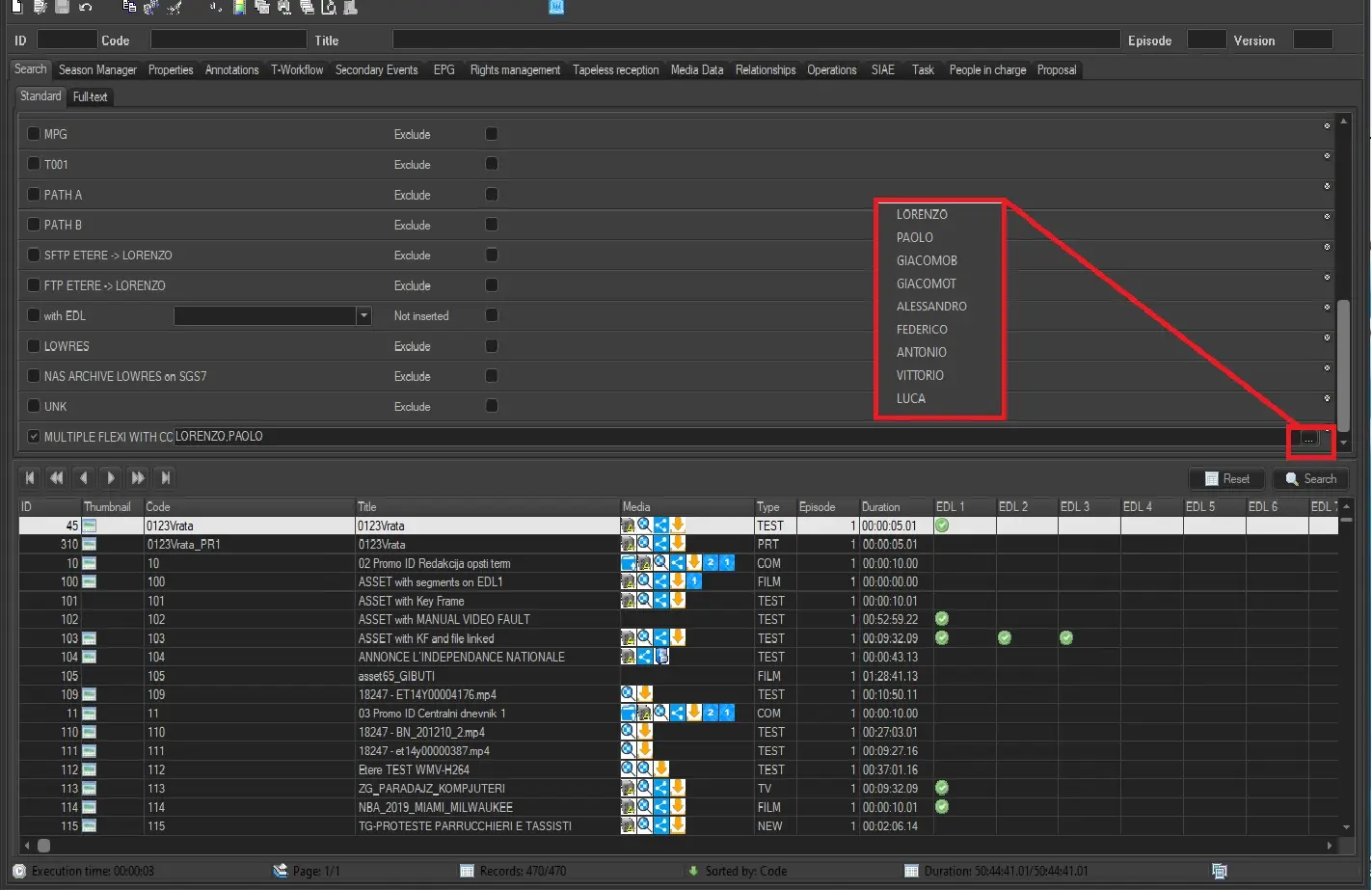 WARNING: if the Flexi selected and enabled in the search is of type INT, REAL or STRING and has more predefined CONSTRAINTS, now in the search it is possible to make a multiple selection from the menu that will open by clicking on the right button. See the following image for reference.