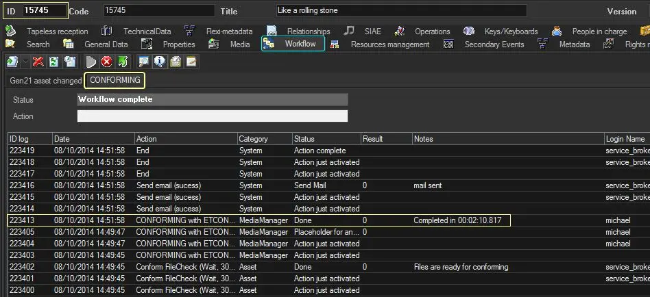 ▪ External mover exe (etconform.exe): This action execute the actual conforming, based on the given EDL, profile and asset.