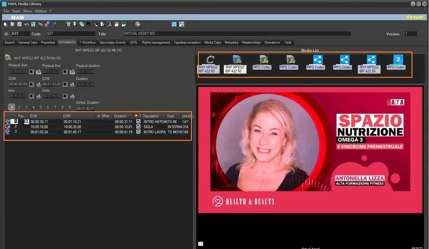 The same Virtual Asset can be previewed in Etere MAM but it must have the lowres version linked to it with the default lowres codec.