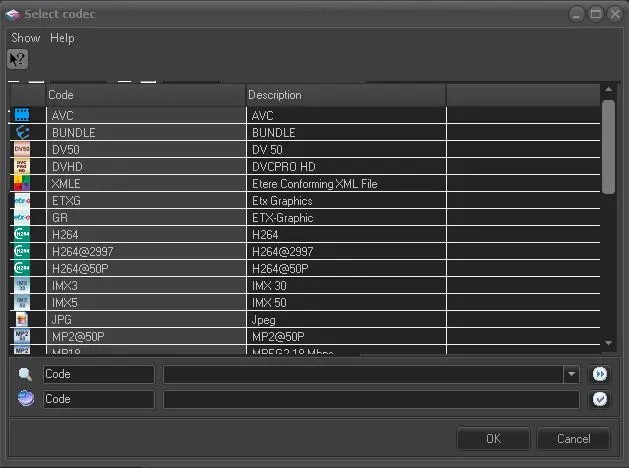 3. From the Select Codec dialogue, select the codec to be assigned to the imported files. Click <OK> to continue.