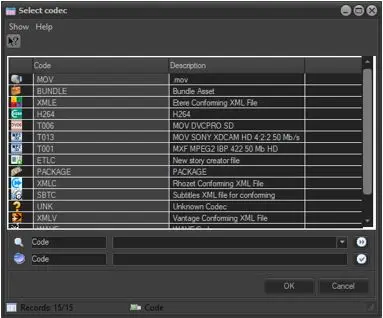 3. Specify the codec (e.g. MPG) to be assigned to the linked file: