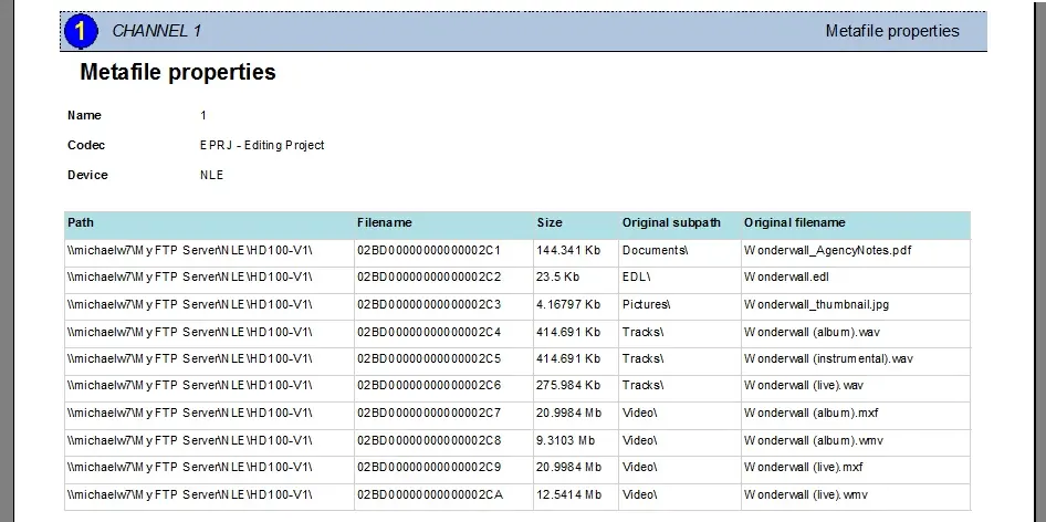 This report is specially useful to consult the content of metafiles related to multiple files ingested, for example, project folders imported through the Project Folder Import function (which import multiple files while keeping track of all their original locations).