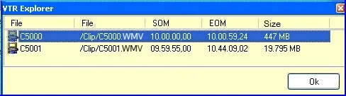 Explore and select video file: Access the XDCAM via FTP and opens the VTR explorer, which displays the disc/tape contents (e.g. to select a clip for editing).